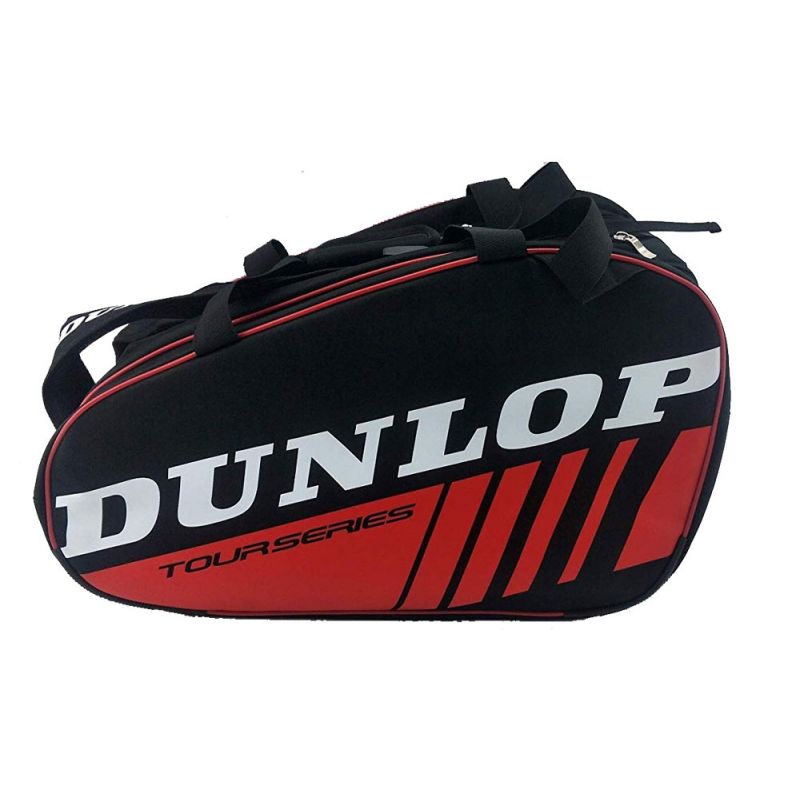 The DUNLOP TOUR INTRO RED PADEL RACKET BAG is a high-quality model designed with ample space to carry everything you need for your matches. It features several well-organized compartments, including: