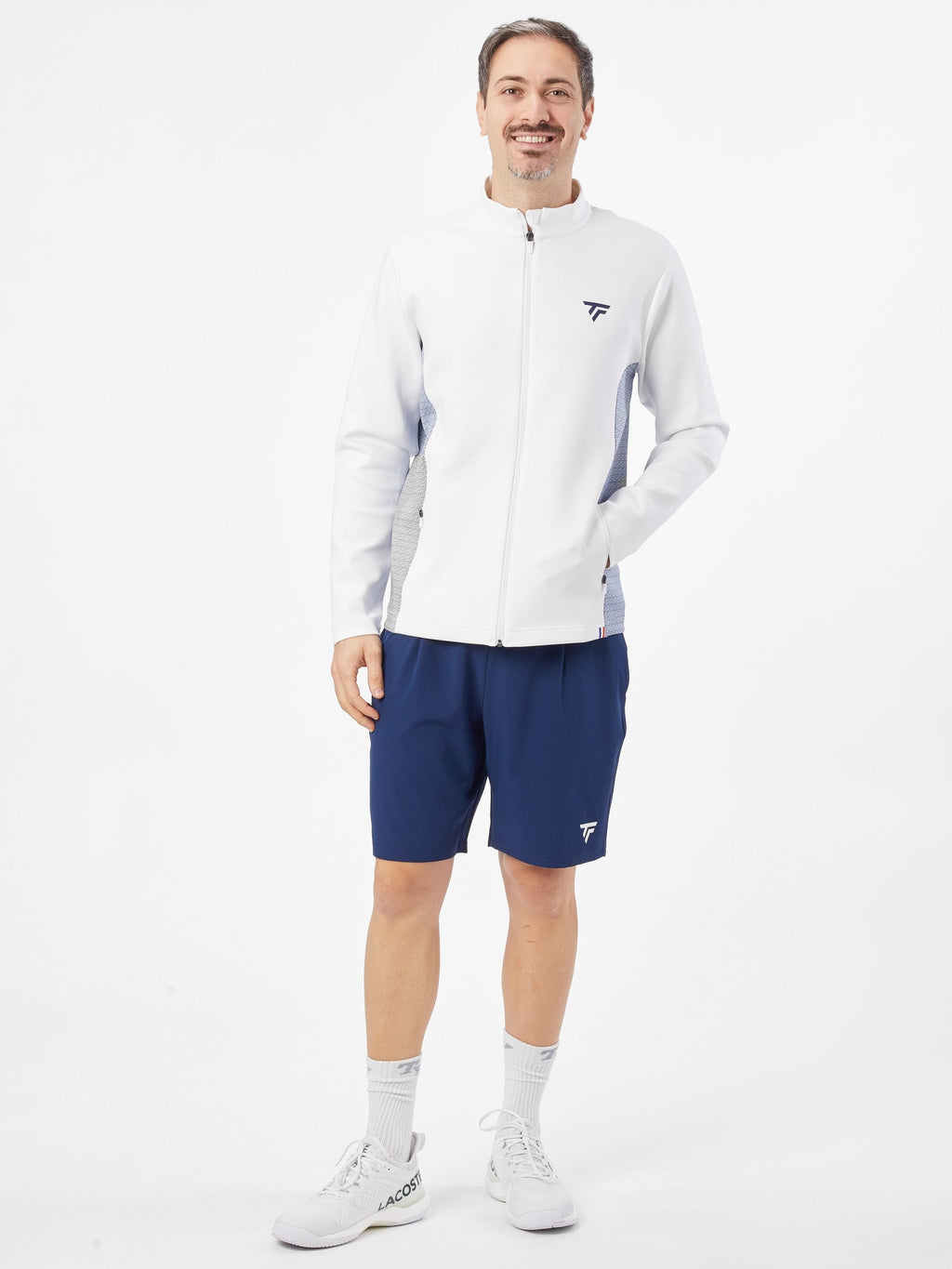 Stay warm without sacrificing movement on those chilly court days with the Tecnifibre Men's Tour Jacket. Crafted from a modern, neoprene-like fabric (93% Polyester, 7% Elastane) for superior comfort and warmth, this jacket is your new essential. It's designed with a slim, streamlined fit for a sleek look, and features a full front zip, a stand-up collar, and handy zippered front pockets. Stylish contrast print side panels and Tecnifibre logos on the left chest and back neck complete the look in crisp White.