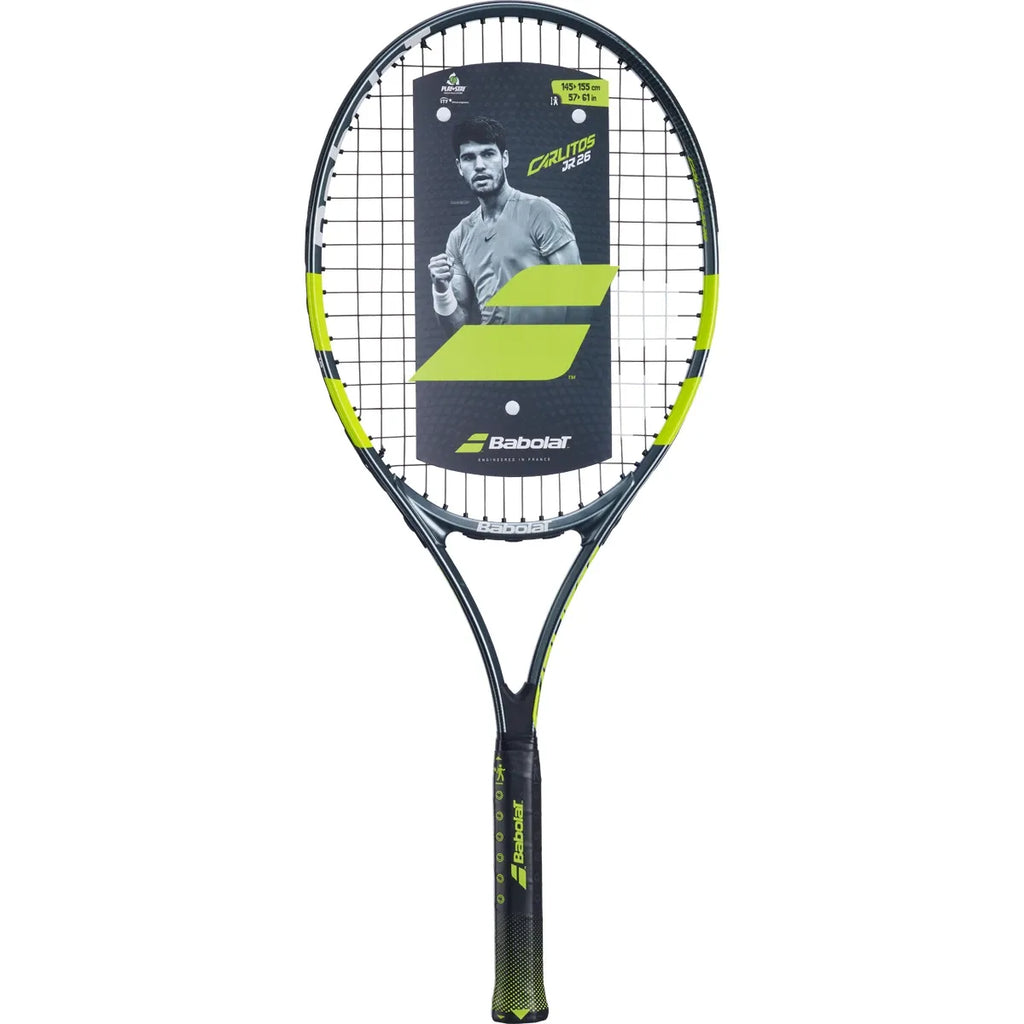 The Babolat Carlitos 26 Junior tennis racket is designed for young players between 145 and 155 cm tall who are just beginning their tennis journey. Inspired by Carlos Alcaraz, it’s an ideal first racket for children looking to learn the basics and develop their skills with confidence.