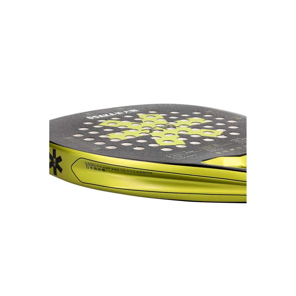 A 68-hole drilling pattern with sharpened edges enhances ball grip, spin, and shot accuracy, while the 3K Japanese carbon face ensures crisp responsiveness and outstanding durability. The racket is finished with a premium metallic paint, giving it a striking, professional appearance to match its performance credentials.