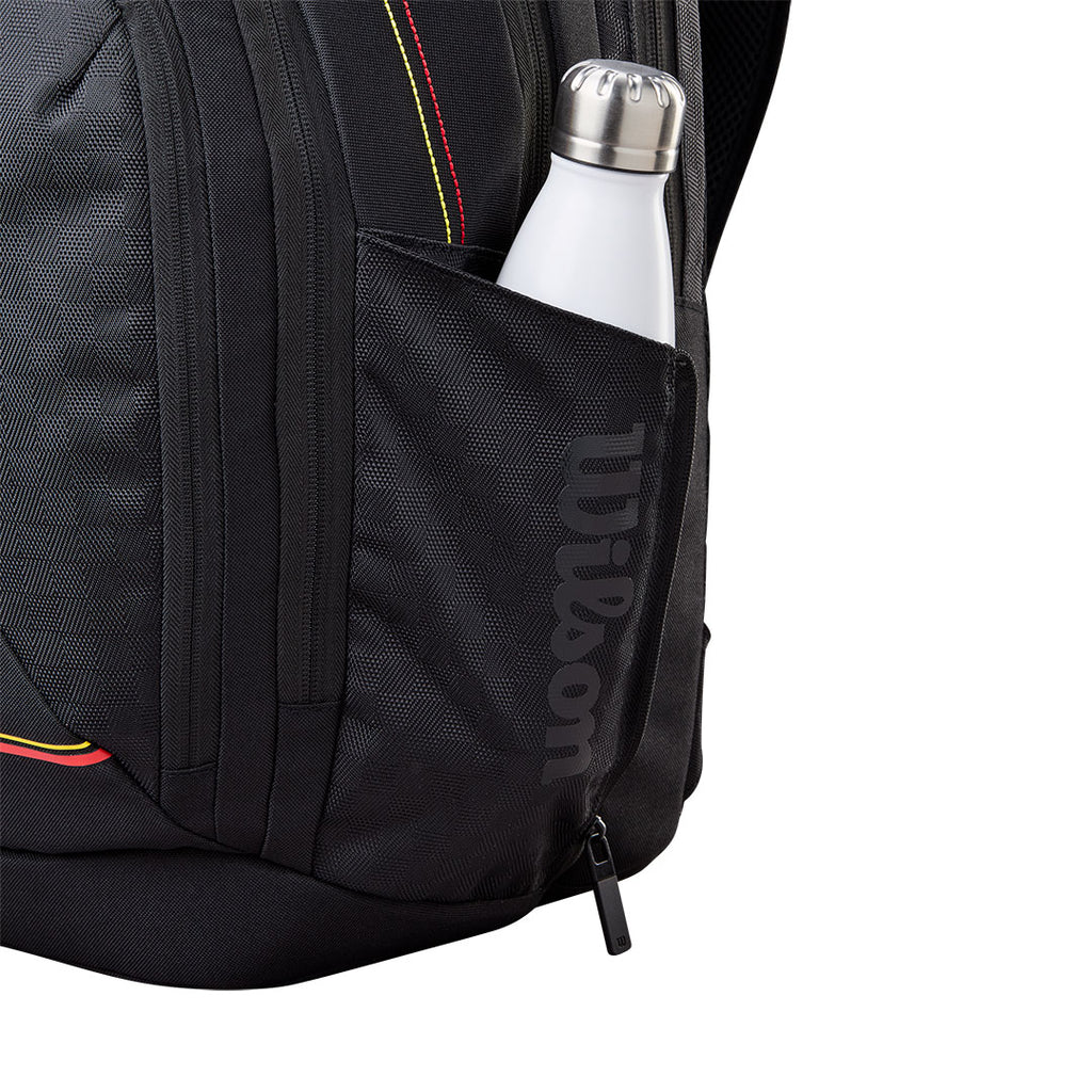 Equipping top tennis players for every match. This Wilson racket bag has a design inspired by our most iconic racket franchise ever, the Pro Staff. Everything has its place, from your laptop to your clothes to your racket (or two). The zip pocket on the side is ideal for small items you want to get to in a hurry. Ergonomic shoulder straps make it comfortable to carry.